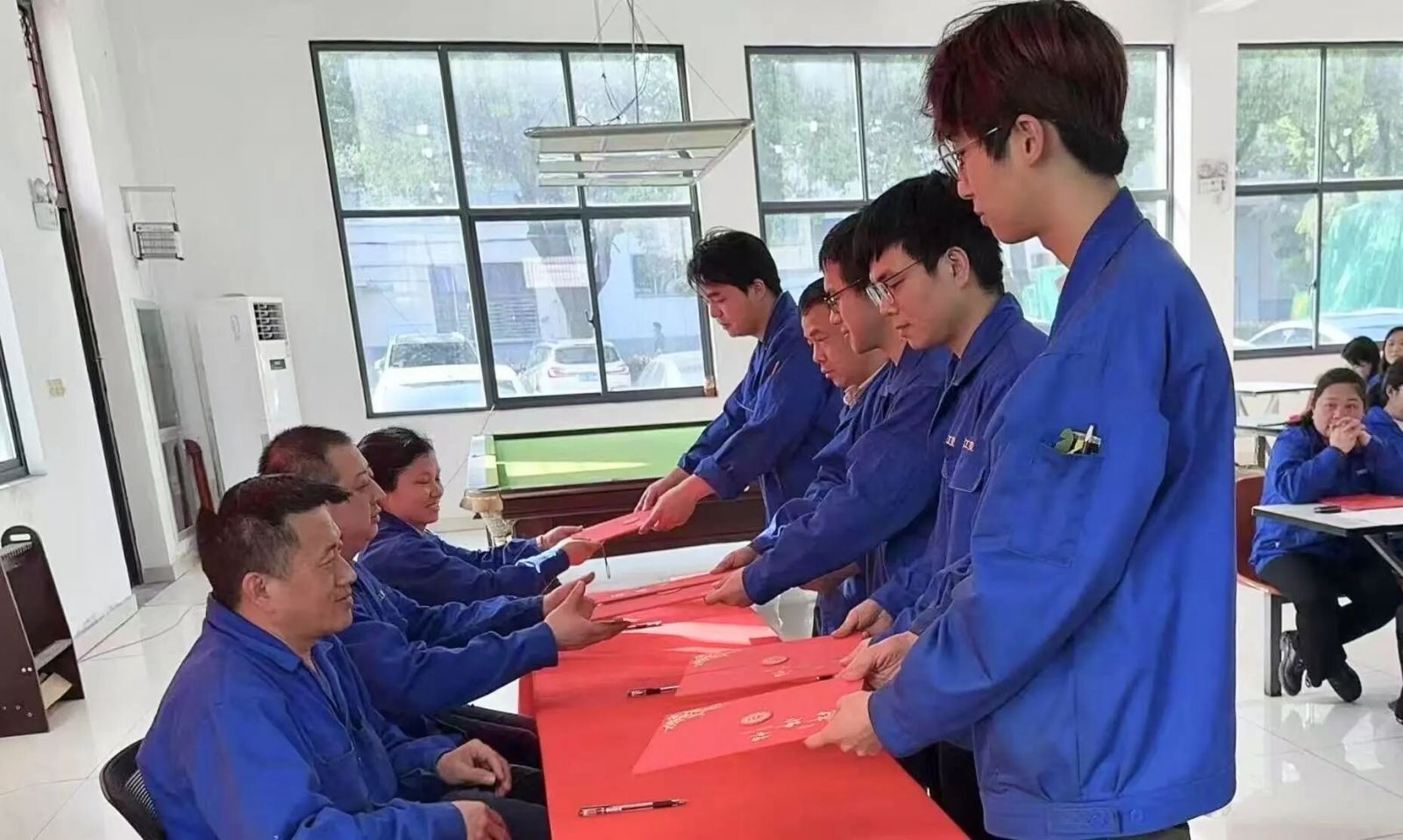 在庄重的签约仪式上,师徒双方郑重签署《师徒协议书》,公司领导成员全程见证。这一纸协议,既勾勒出清晰的培养路径与考核标准,更立下了薪火相传的庄严承诺,标志着企业技术传承体系迈入规范化、制度化新阶段。