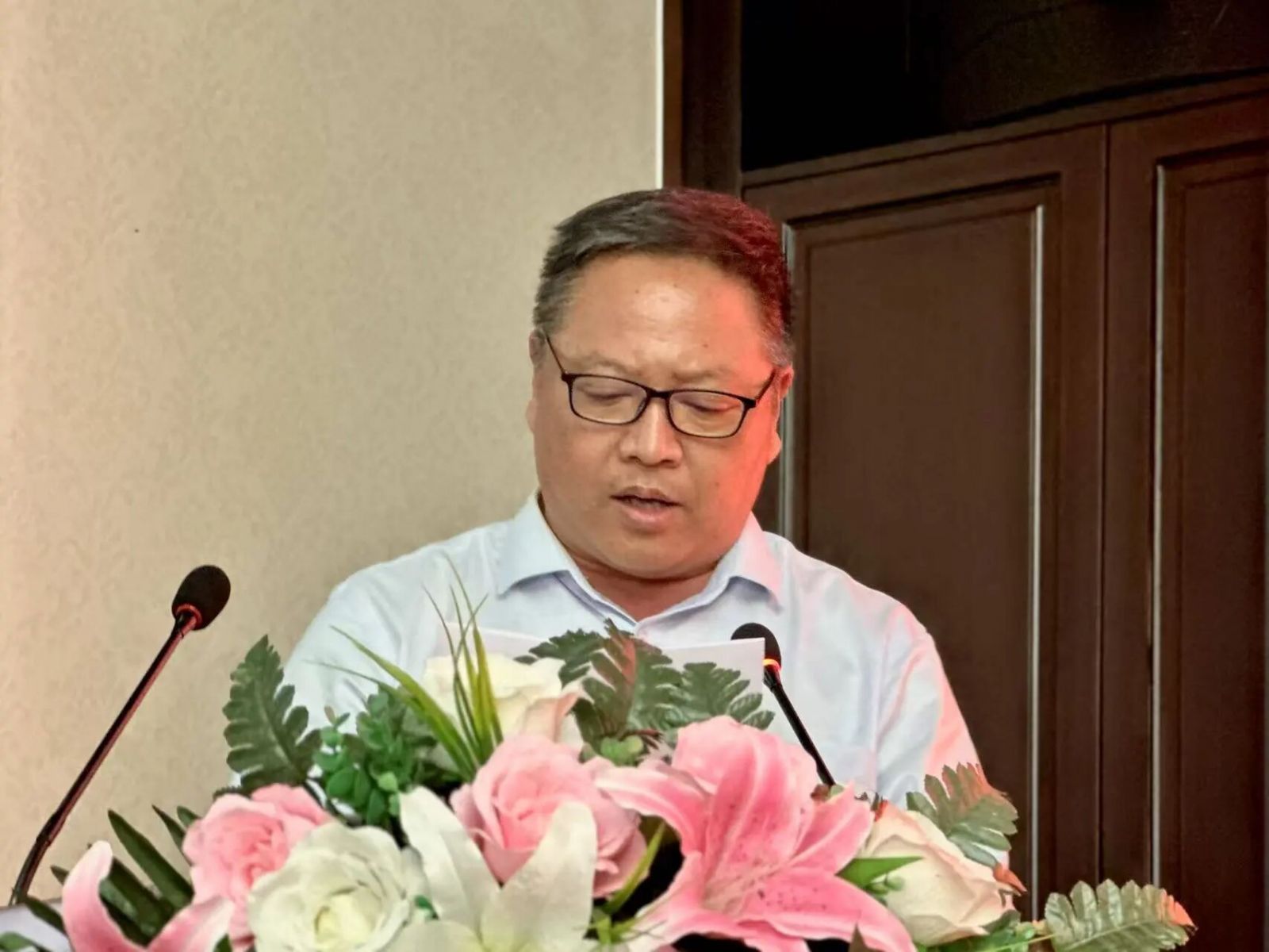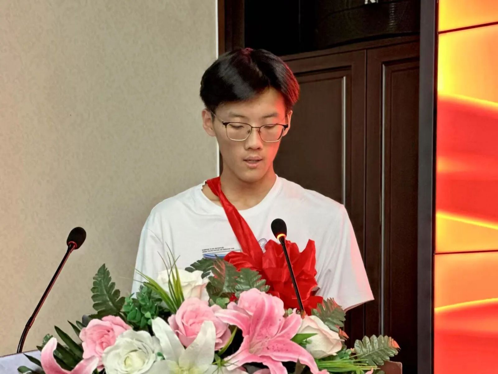 活动伊始,工作人员为到场的学子与家长佩戴象征荣耀的红花。公司副总经理陈小新温暖致辞,肯定学子努力,感谢家长支持,传递公司对员工“小家”的关怀。